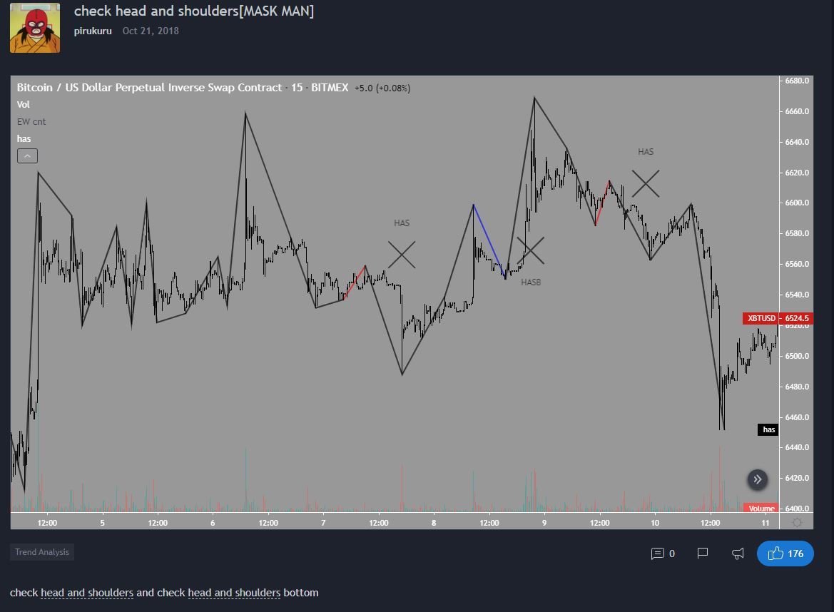 I have managed to find only one free indicator in TradingView that seems to do a decent enough job of recognizing where Head and Shoulders might be.